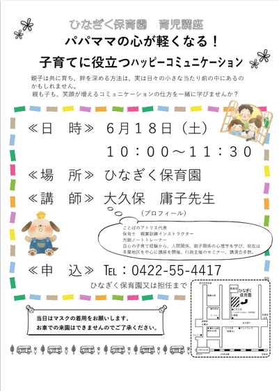 6月18日㈯ 東小金井 ひなぎく保育園様 講演会のご案内