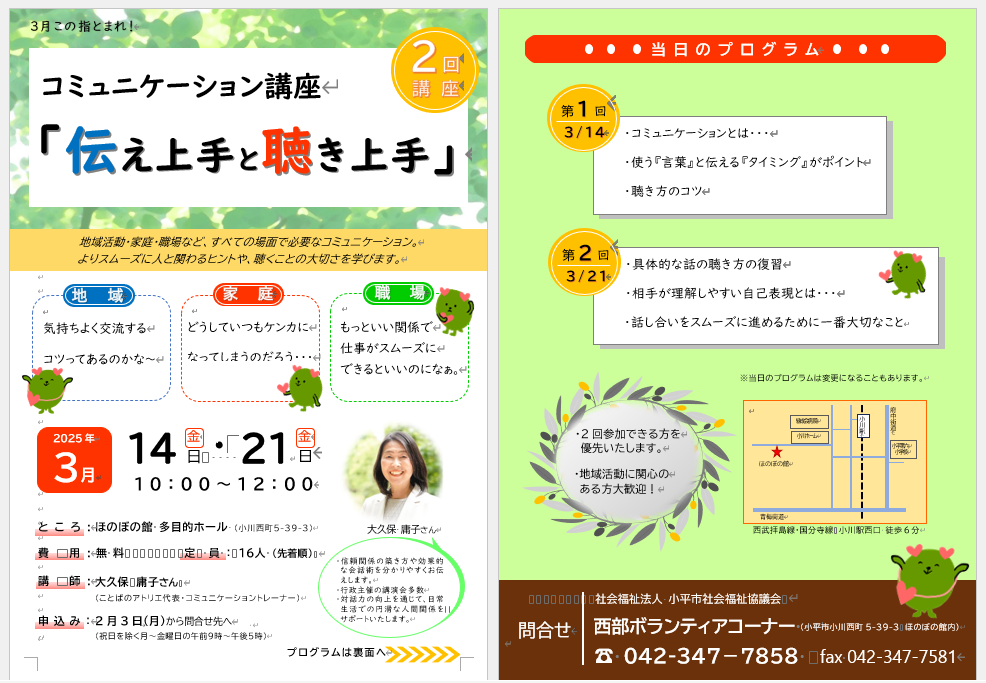 このたび、小平市社会福祉協議会 西部ボランティアセンター主催の講演会でお話しさせていただくことになりました。